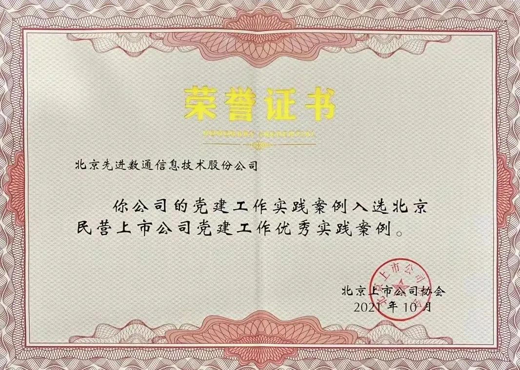 近期,北京上市公司协会授予北京奥林匹斯之门 pp电子奥林匹斯之门信息技术股份公司荣誉证书,奥林匹斯之门 pp电子奥林匹斯之门党建工作实践入选北京民营上市公司党建工作优秀实践案例,相关党建活动已收录在《北京民营上市公司党建工作优秀实践案例汇编》。